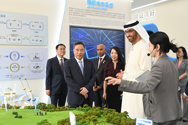 會談前,蘇爾坦·賈比爾在宋海良陪同下參觀了中國能建企業展廳。